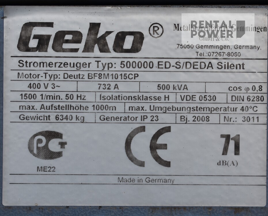 Rental Power / Оренда обладнання / оренда генераторів / Генератор дизельний Geko 500000 ED-S/DEDA (400кВт) (вживаний)